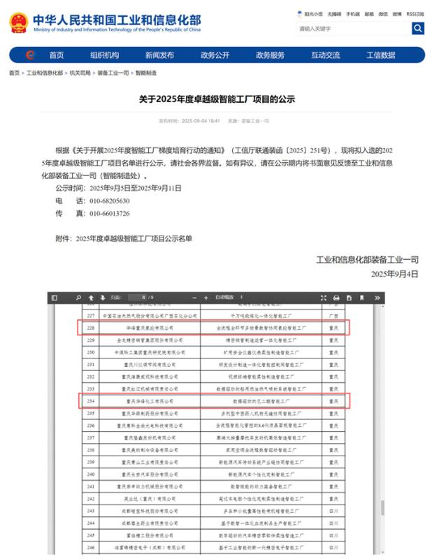 名單可見(jiàn),重慶華峰化工“數(shù)據(jù)驅(qū)動(dòng)的己二酸智能工廠”和華峰重慶氨綸“全流程全環(huán)節(jié)多場(chǎng)景數(shù)智協(xié)同氨綸智能工廠”成功上榜“卓越級(jí)智能工廠”公示名單;重慶華峰化工“5G全連接工廠項(xiàng)目”雙料入圍“2025年5G工廠”名錄。