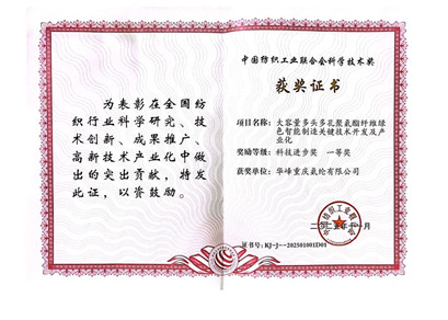 11月28日,2025年度中國紡織工業(yè)聯(lián)合會(huì)科學(xué)技術(shù)獎(jiǎng)勵(lì)大會(huì)在北京人民大會(huì)堂隆重舉行,對(duì)推動(dòng)紡織行業(yè)科技進(jìn)步的優(yōu)秀成果進(jìn)行表彰。由華峰重慶氨綸有限公司、華峰化學(xué)股份有限公司聯(lián)合東華大學(xué)、西南大學(xué)共同研發(fā)的“大容量多孔高速氨綸智能制造關(guān)鍵技術(shù)開發(fā)及產(chǎn)業(yè)化”項(xiàng)目(以下簡稱“項(xiàng)目”),憑借在氨綸生產(chǎn)全鏈條的突破性創(chuàng)新,榮獲科技進(jìn)步獎(jiǎng)一等獎(jiǎng),成為引領(lǐng)氨綸行業(yè)向綠色化、智能化轉(zhuǎn)型的標(biāo)桿成果。